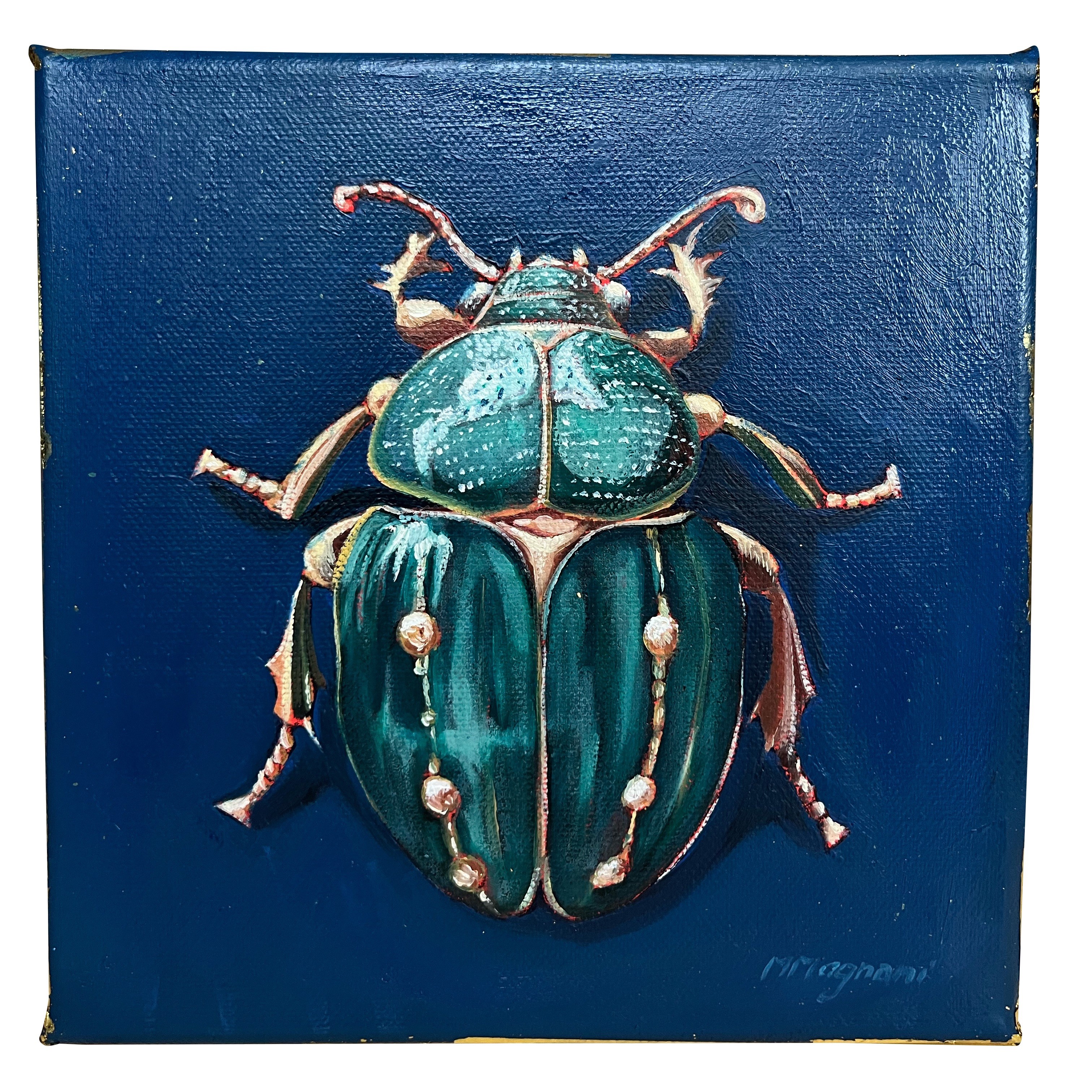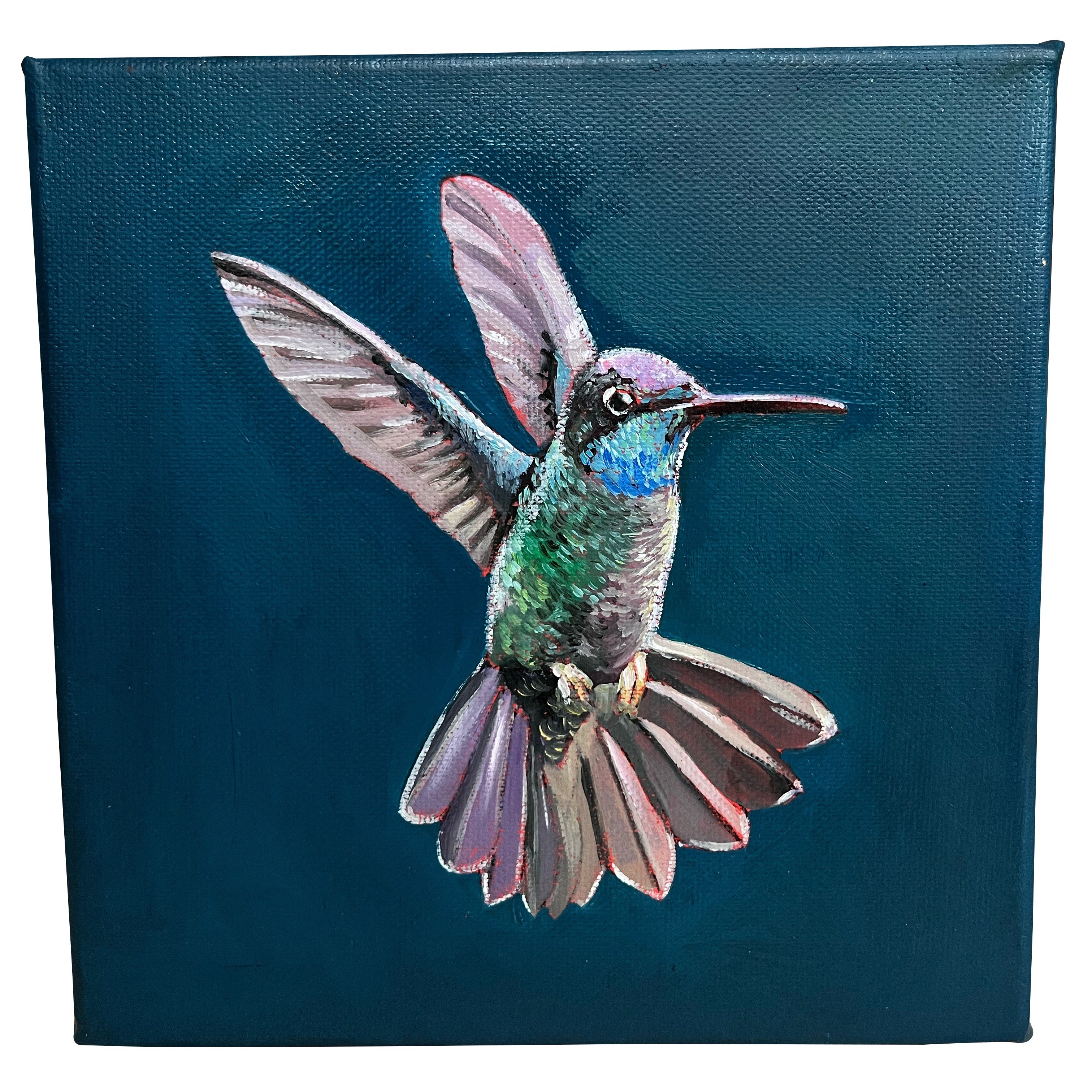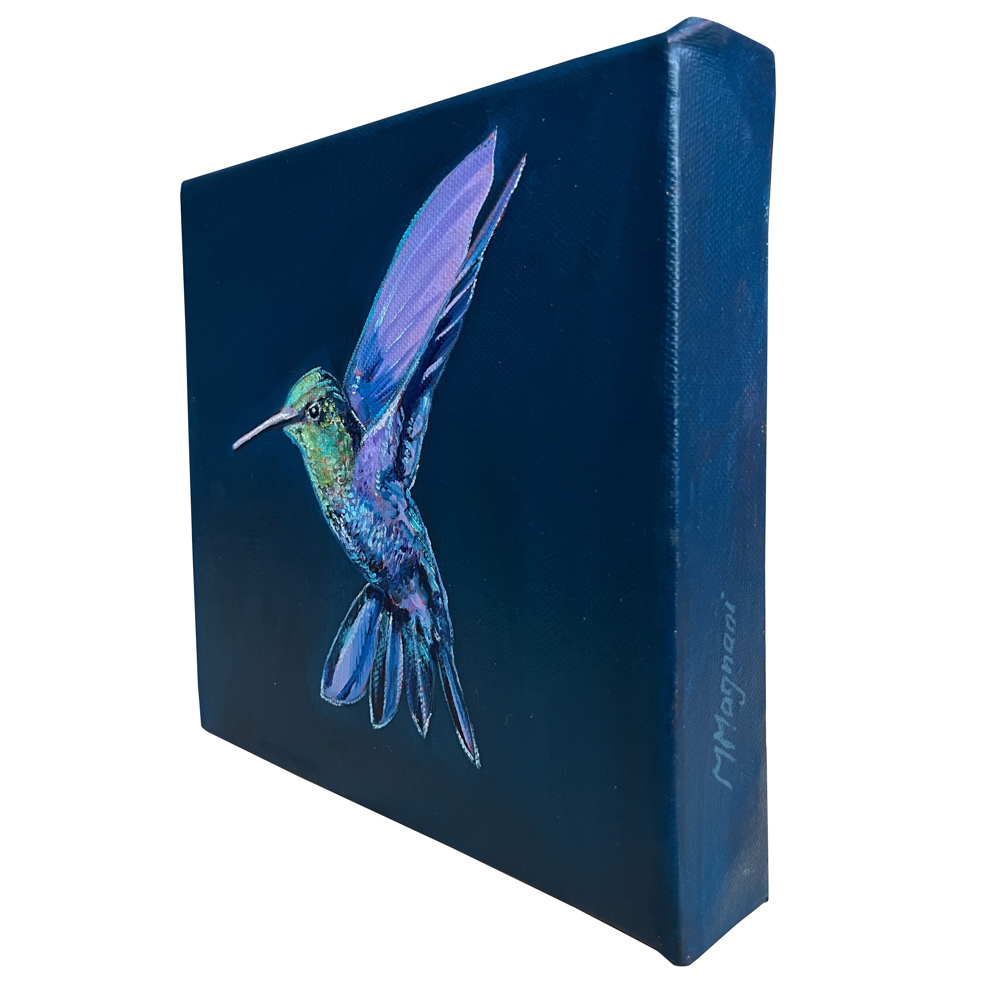 In questa serie di oli su tela, Marco Magnani cattura l'energia cinetica del colibrì, simbolo universale di gioia e resilienza. L'artista gioca con contrasti audaci: la stasi cromatica dello sfondo, un ottanio profondo o un bordeaux vellutato, accoglie la danza frenetica del piumaggio iridescente. Ogni pennellata è un frammento di luce che sembra vibrare fuori dalla tela "gallery", trasformando il piccolo volatile in un gioiello vivente. Un'opera che invita a fermarsi e celebrare la perfezione dei minimi dettagli della natura.